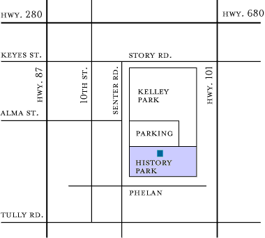 Please Note: The map fails to include the large overflow event parking lot down Phelan Avenue behind History Park( (3rd Driveway on Left). The City of San José charges a $6 all-day parking fee in all History Park lots. Limited street parking.